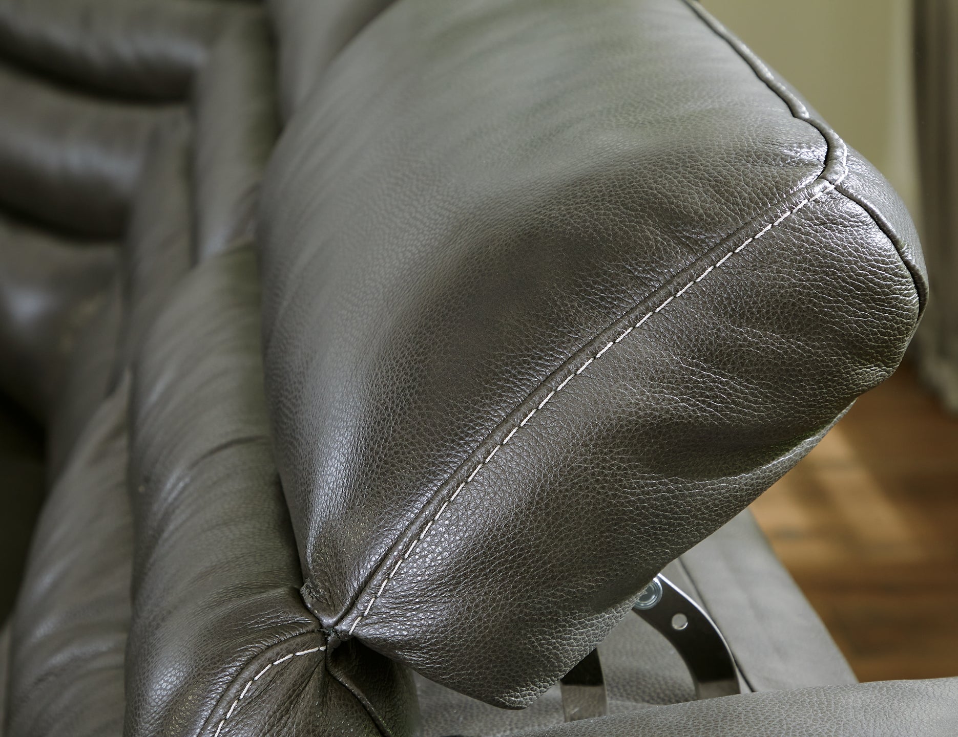 Details | Includes 7 pieces: left-arm facing power recliner, power armless recliner, armless chair, wedge, right-arm facing power recliner and 2 consoles with storage, "Left-arm" and "right-arm" describe the position of the arm when you face the piece, One-touch power control with adjustable positions, Easy View™ adjustable headrest and zero-draw USB port, Zero-draw technology only consumes power when the USB receptacle is in use, Corner-blocked frame with metal reinforced seat, Attached cushions, High-quality foam cushions wrapped in poly fiber, 100% top grain leather covers inside areas such as the back, seat and arm cushions; skillfully matched faux leather covers the remaining areas, Due to its natural origin, real leather can show individual characteristics such as healed scars, growth marks, grain variation and shade variation, Natural variations make each hide unique and do not detract from the wearing qualities of leather, Zero wall recliner design requires minimal space between wall and chair back, Console with 2 cup holders and storage, Power cord included; UL Listed | |